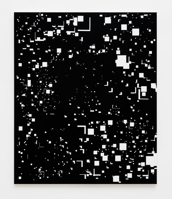 Für die Künstlerin bildet das Raster die Grundlage, um Abweichungen von der Ordnung überhaupt erst erfahrbar zu machen. Ohne das System wäre die Systemlosigkeit nicht denkbar, da sie nur im Verhältnis zum bestehenden Ordnungsgefüge beschrieben werden kann. In dieser Dialektik zwischen Struktur und Abweichung entfaltet Stocker ihre eigene Logik des Chaos. Es entstehen Räume, die den Betrachter*innen das Potenzial zur Orientierung und gleichsam zum Verlieren bieten. Ihre reduzierte Formensprache, geprägt von Linien und Rasterstrukturen in Schwarz und Weiß, wird in strikte formale Grenzen und räumliche Dimensionen übertragen. Aus der Konzentration auf minimalistische Mittel – die Horizontalen, Vertikalen und Diagonalen des Raumes – entwickeln sich sowohl Stockers Malereien als auch ihre installativen Arbeiten und Skulpturen, wobei die charakteristische Reduktion auf schwarz-weiße Raster als konzeptuelle Klammer ihr gesamtes Œuvre durchzieht.