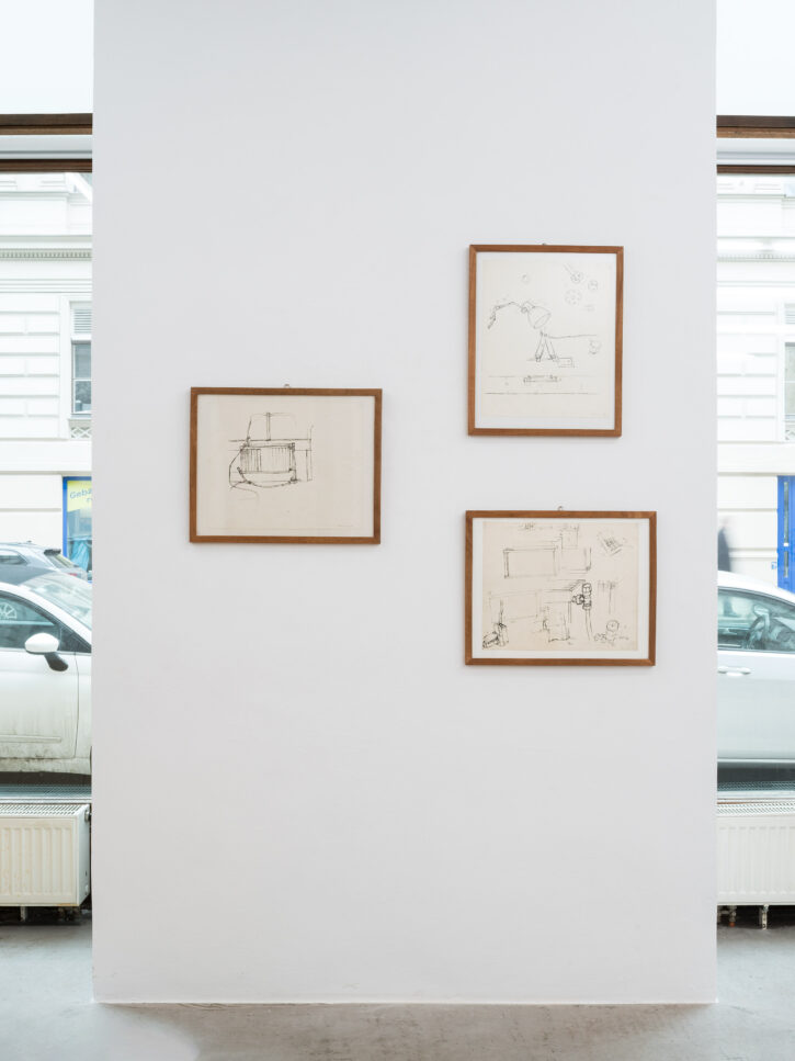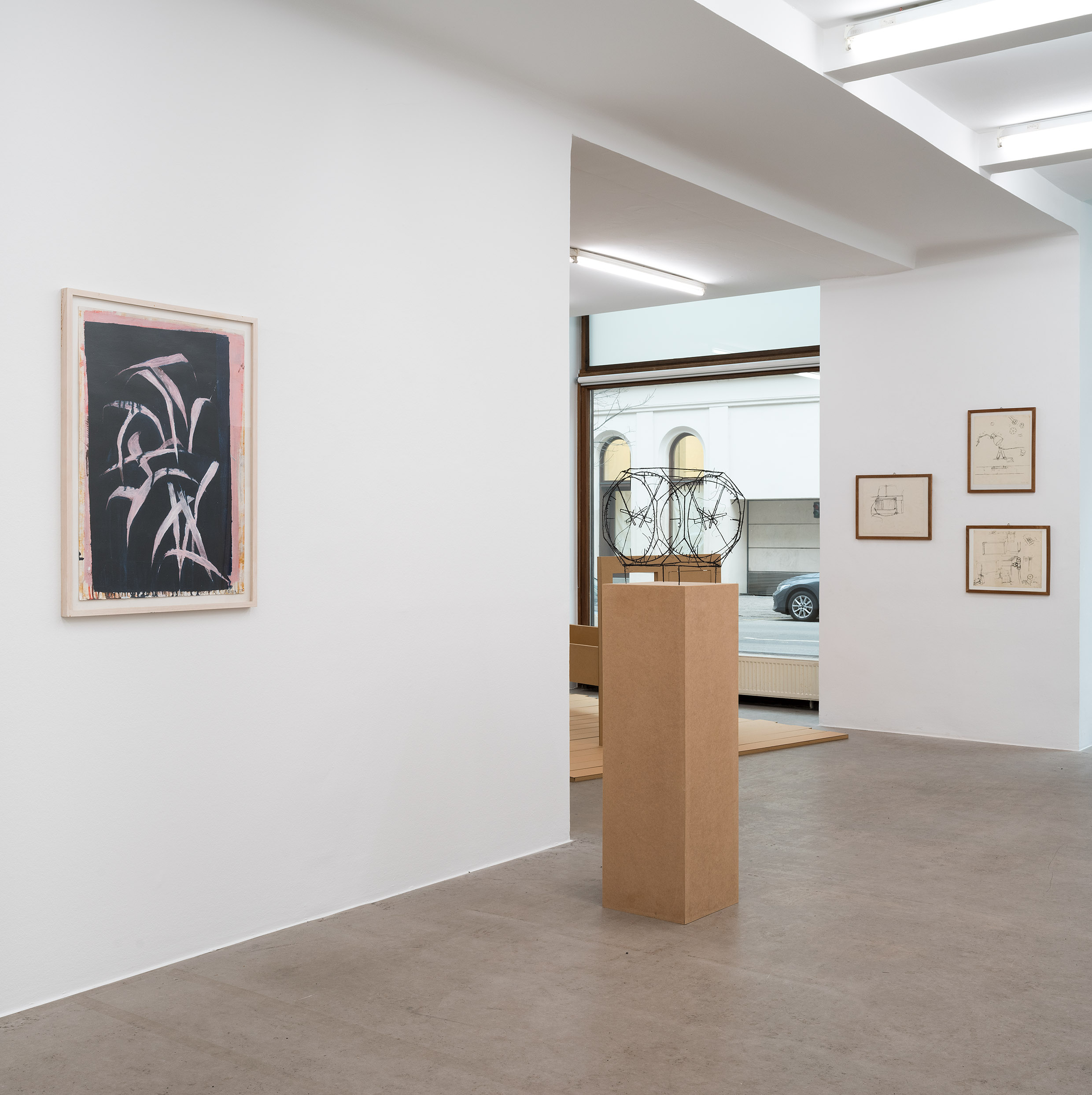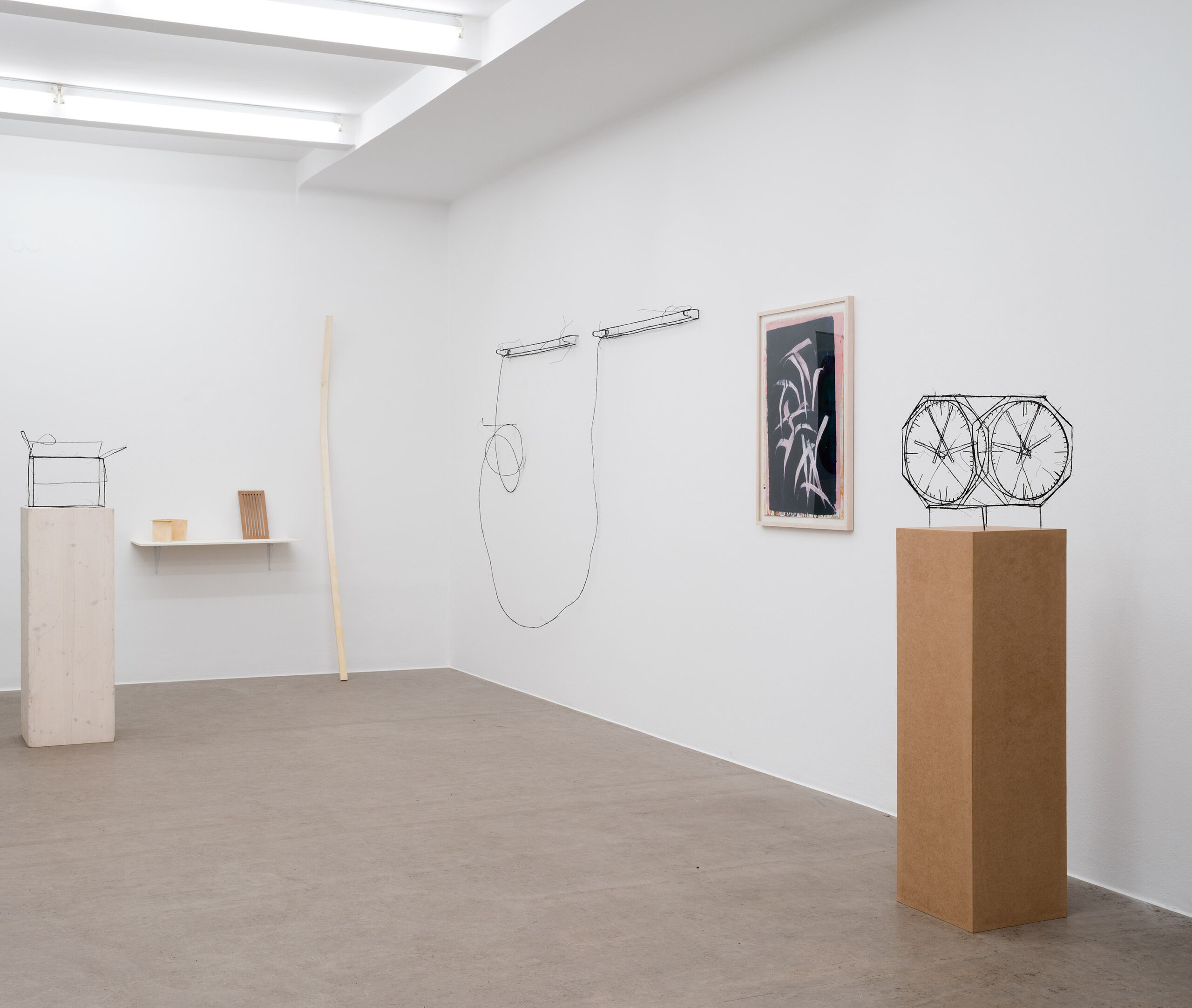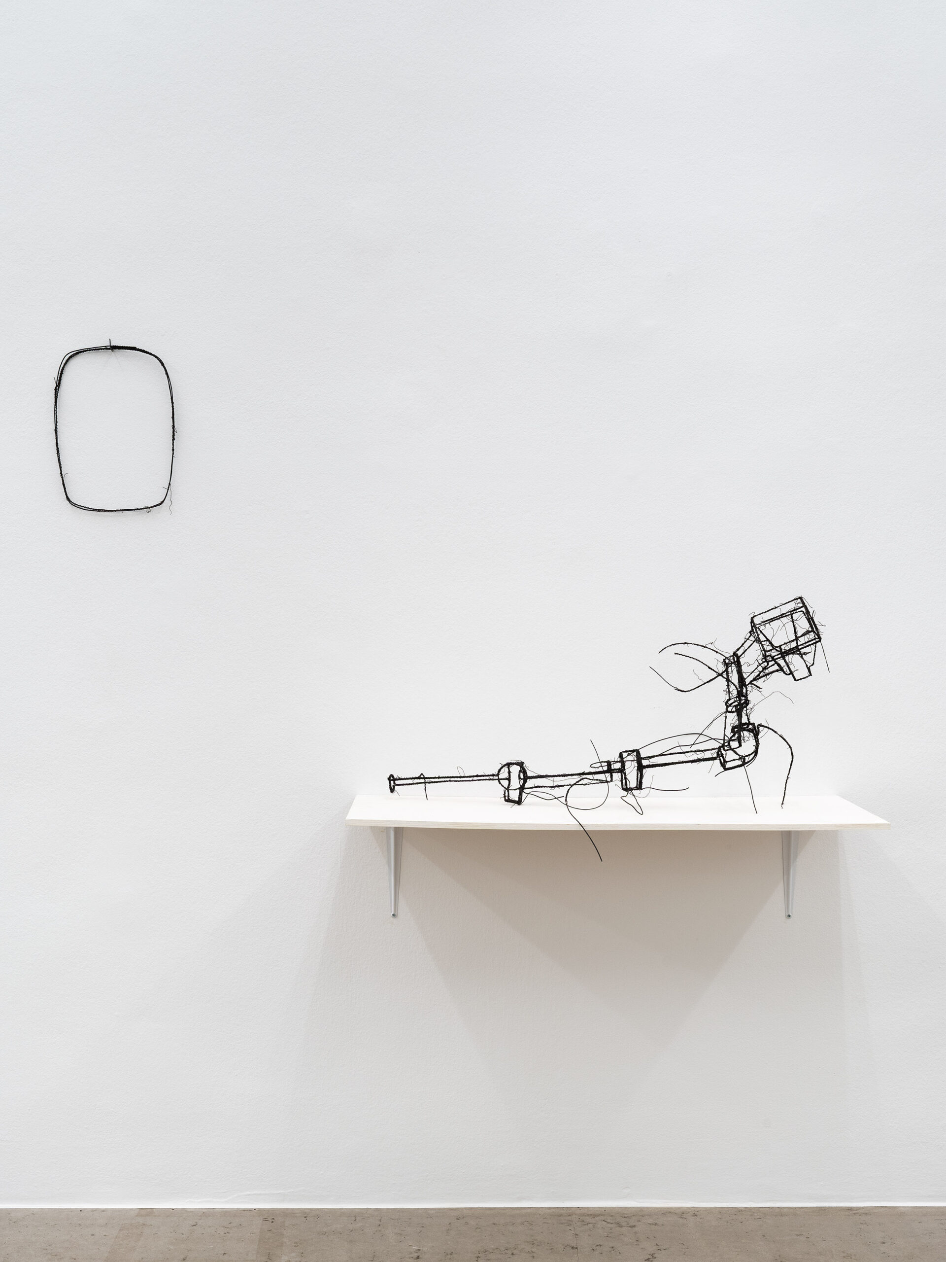 Die ersten Drahtskulpturen sind im Jahr 2000 entstanden. Ich nenne sie dreidimensionale Zeichnungen. Zum Beispiel ein Reisekoffer, eine Schuhschachtel, ein Waschbecken, ein Plattenspieler, eine Wiener Würfeluhr. Draht hat weniger Körper als Karton. Was in der Skulptur bleibt, ist der Strich der Zeichnung.