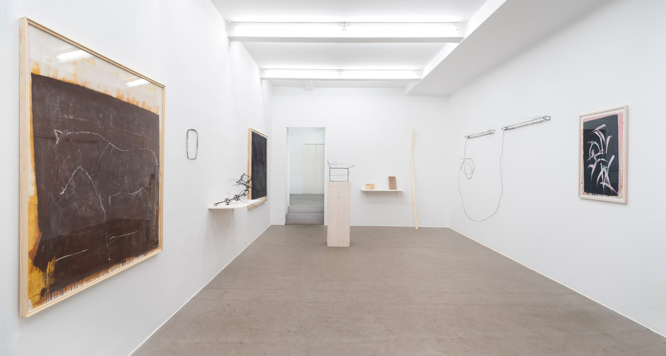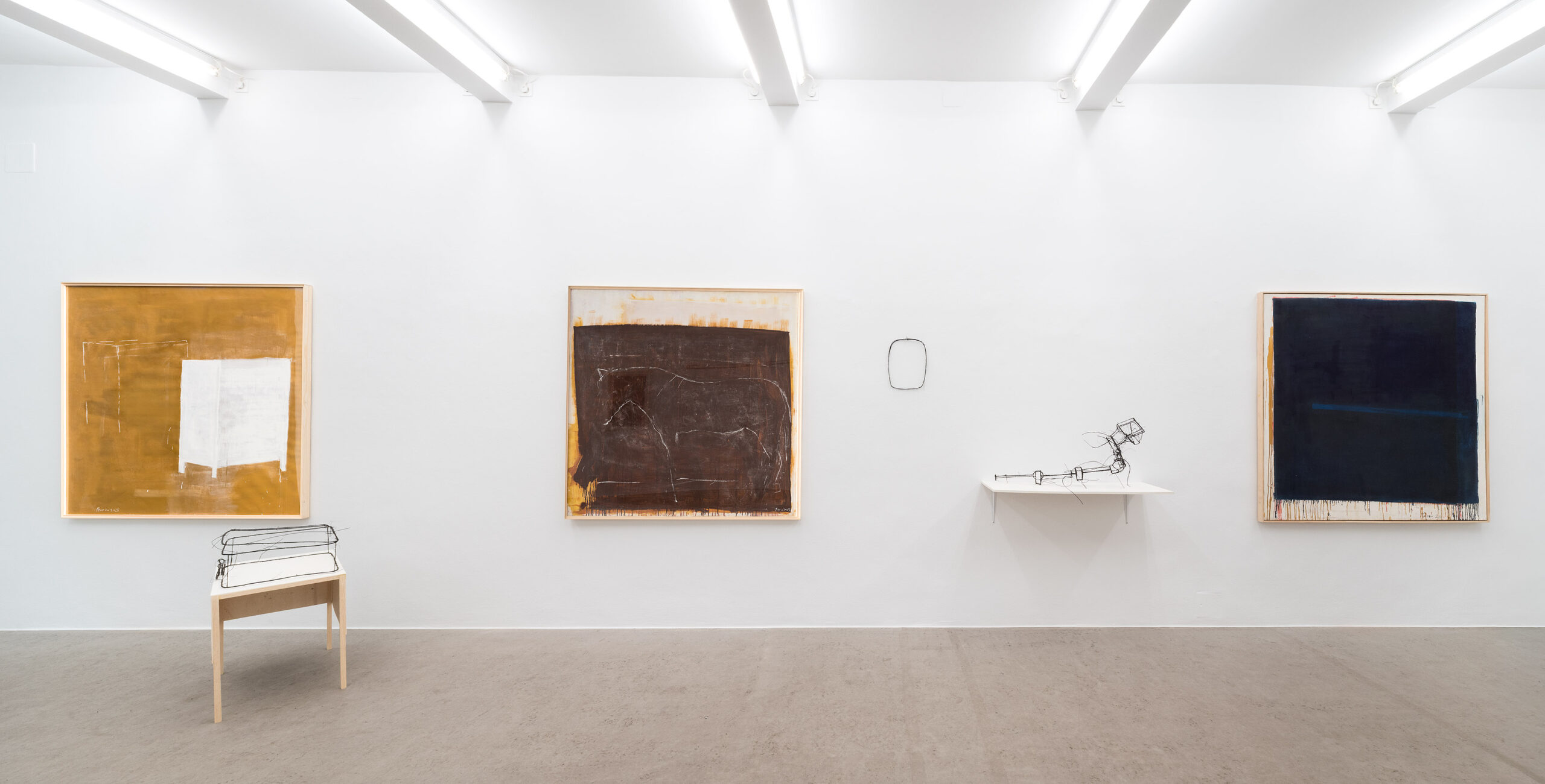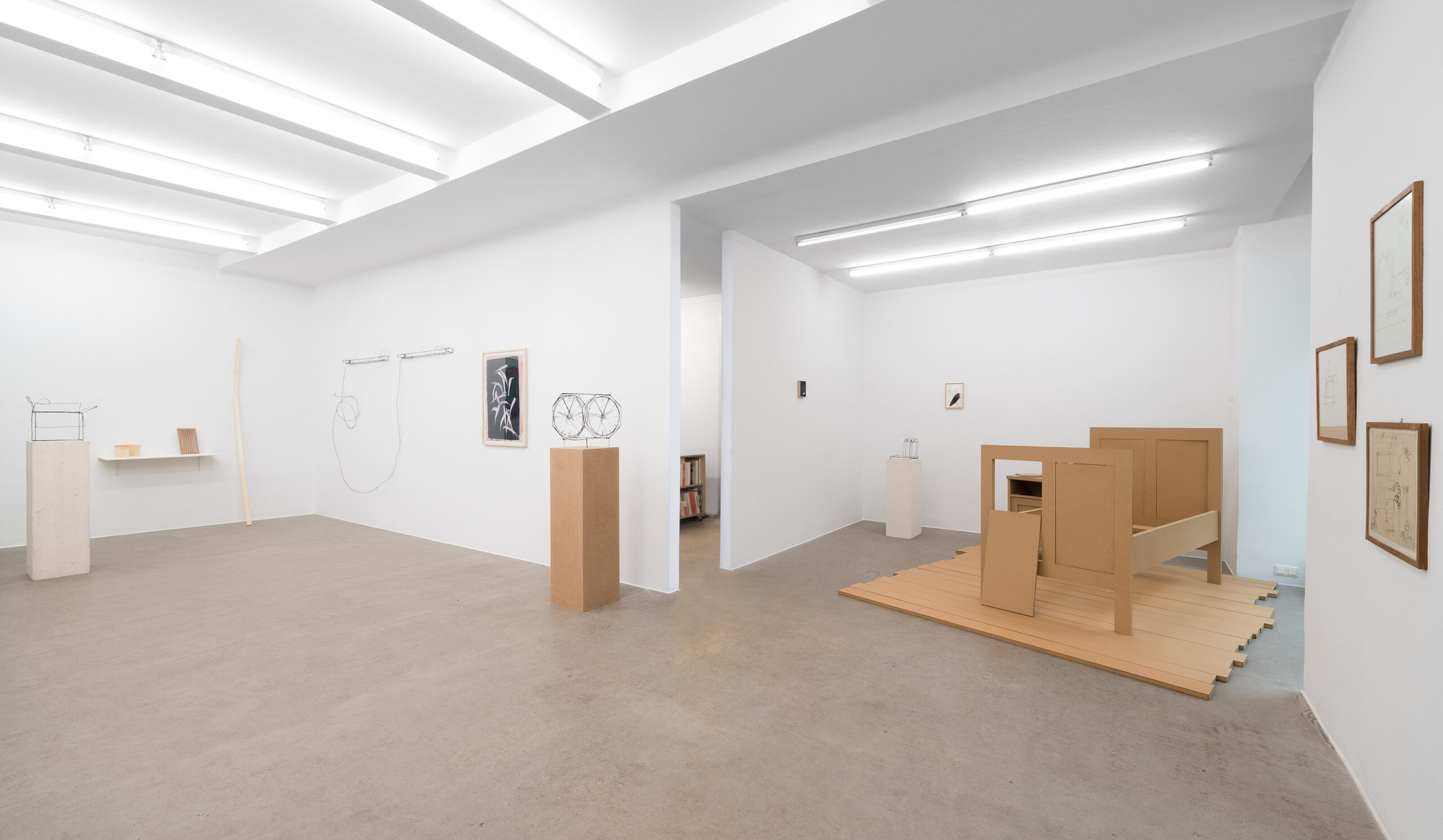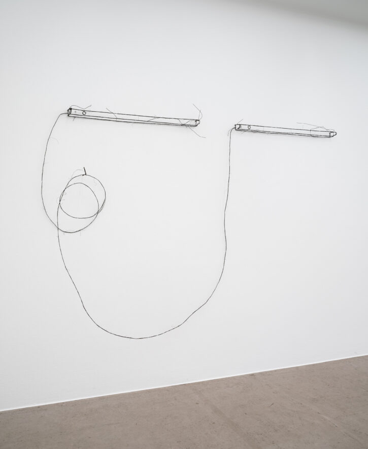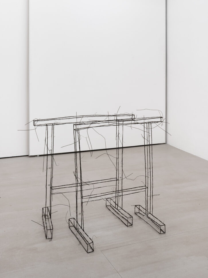 Die ersten Drahtskulpturen sind im Jahr 2000 entstanden. Ich nenne sie dreidimensionale Zeichnungen. Zum Beispiel ein Reisekoffer, eine Schuhschachtel, ein Waschbecken, ein Plattenspieler, eine Wiener Würfeluhr. Draht hat weniger Körper als Karton. Was in der Skulptur bleibt, ist der Strich der Zeichnung.