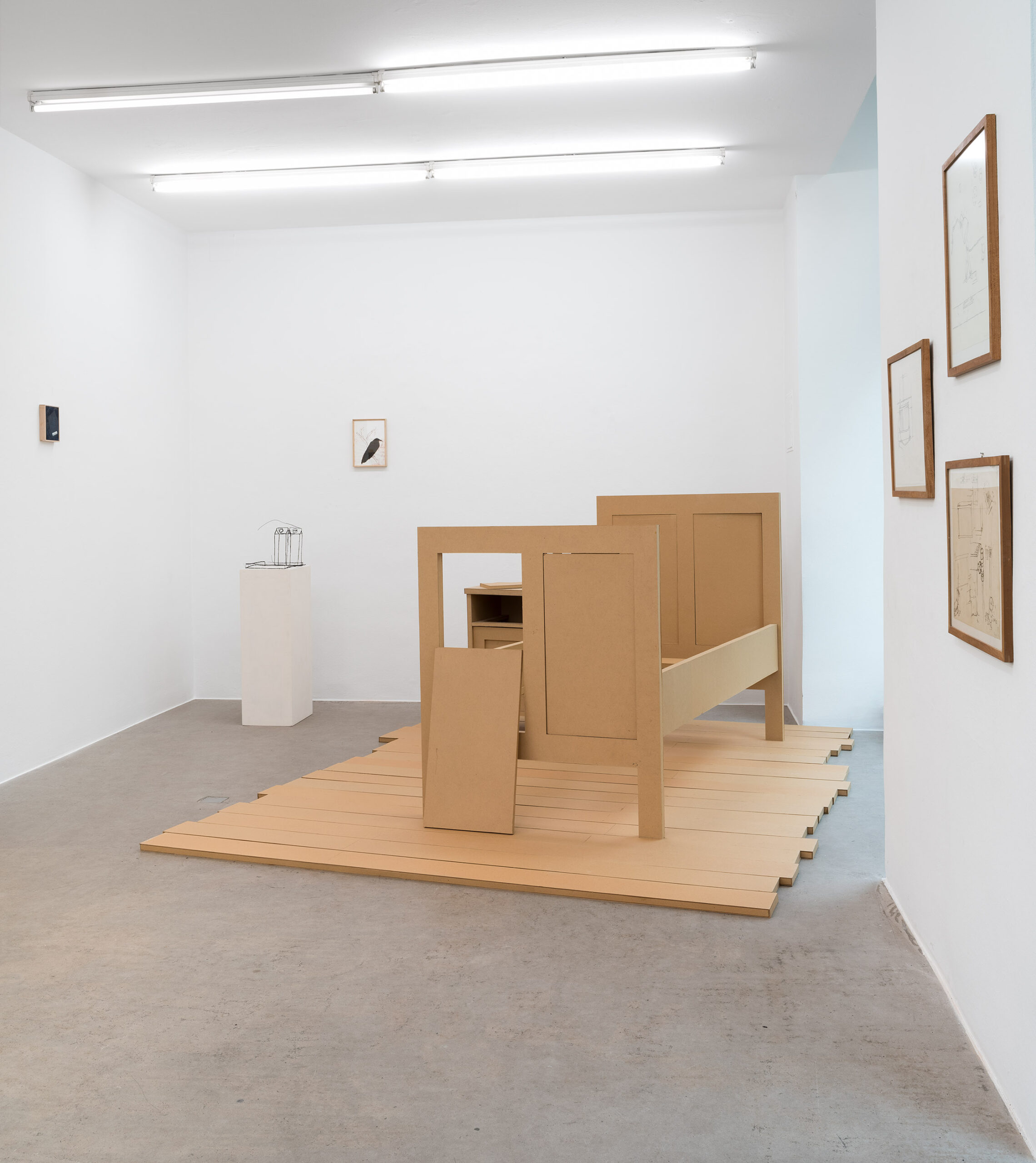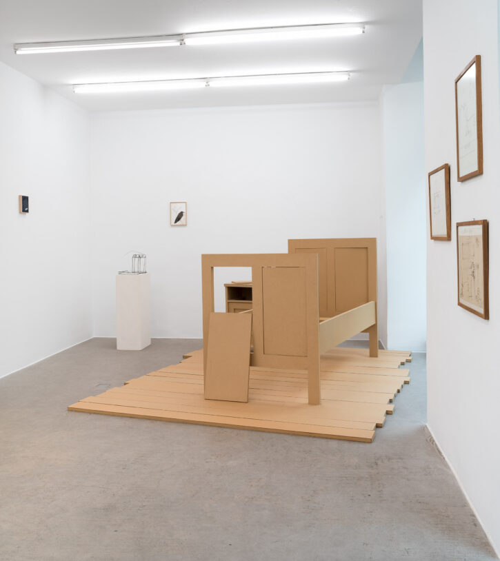 Damals habe ich begonnen, Skulpturen aus billigem, braunem Karton zu bauen. Eine Küche, ein Schlafzimmer, immer in Originalgröße. Es hat aber auch sakrale Gegenstände oder Werke anderer Künstler gegeben, die zu Motiven wurden, zum Beispiel ein Seitenaltar der Servitenkirche in Wien oder die Wotruba-Plastik auf der 2erLinie. Mir gefiel die Vorstellung, dass Kunstwerke so auch auf die Ebene von Gebrauchsgegenständen kamen.