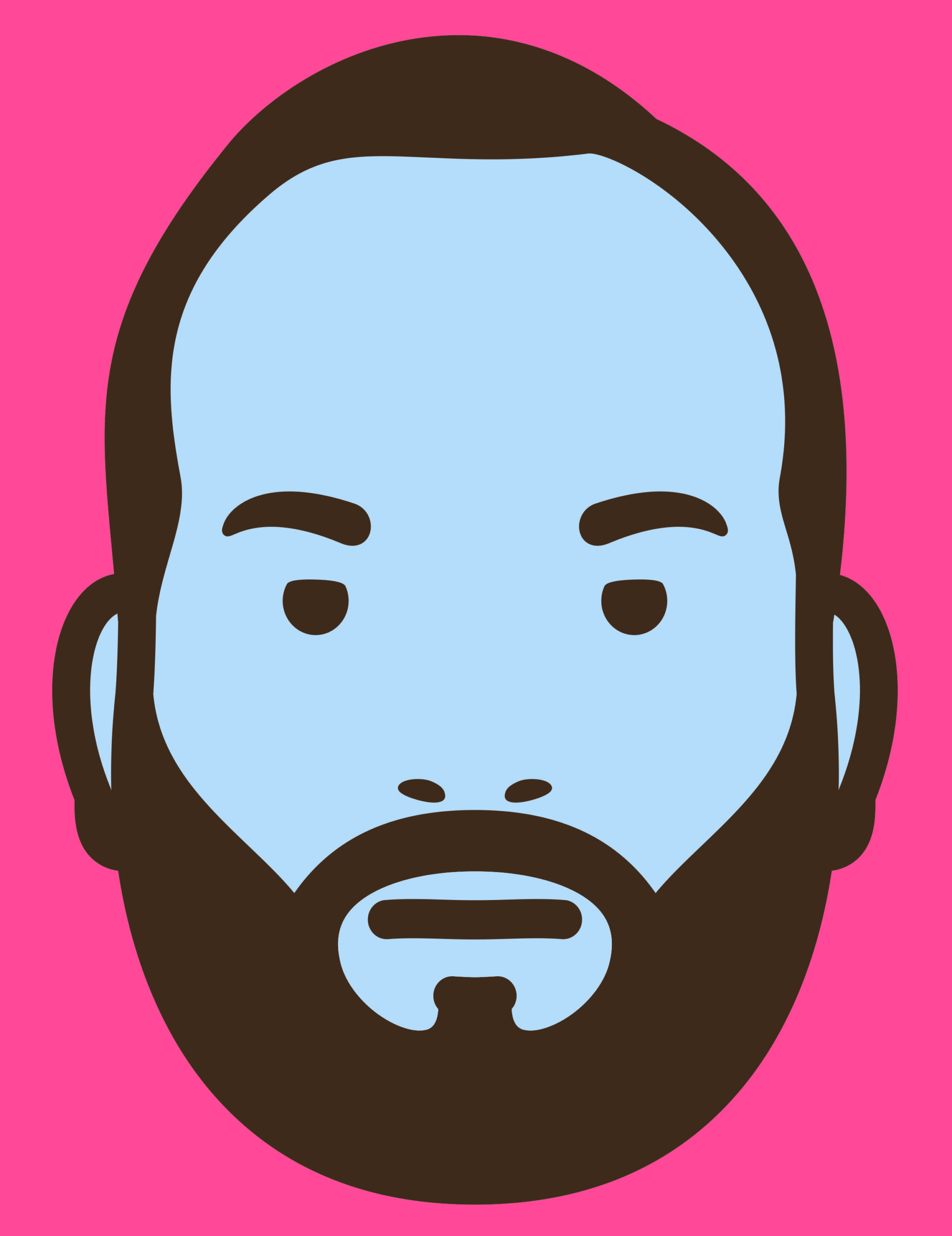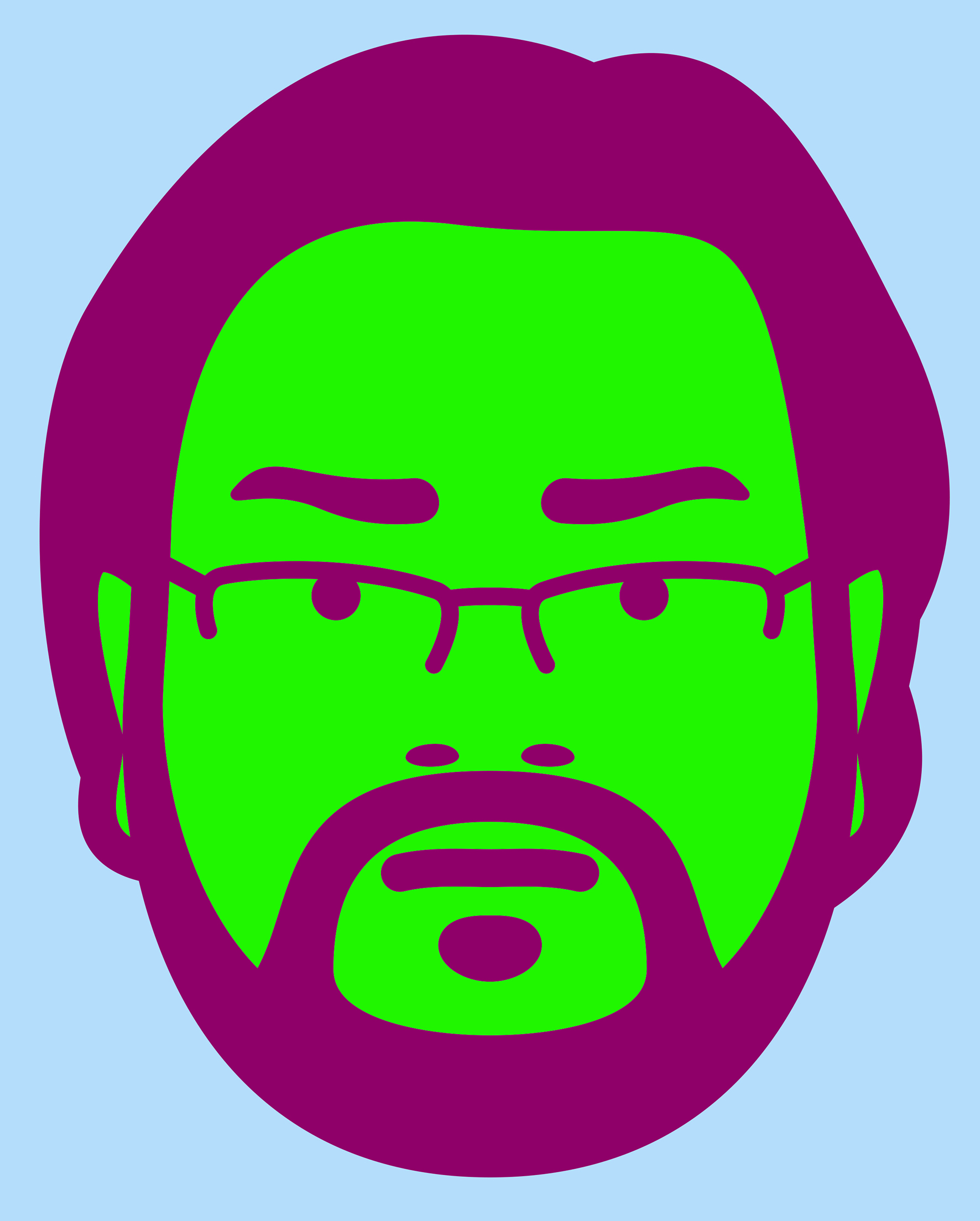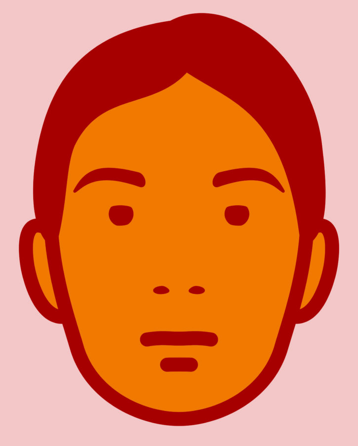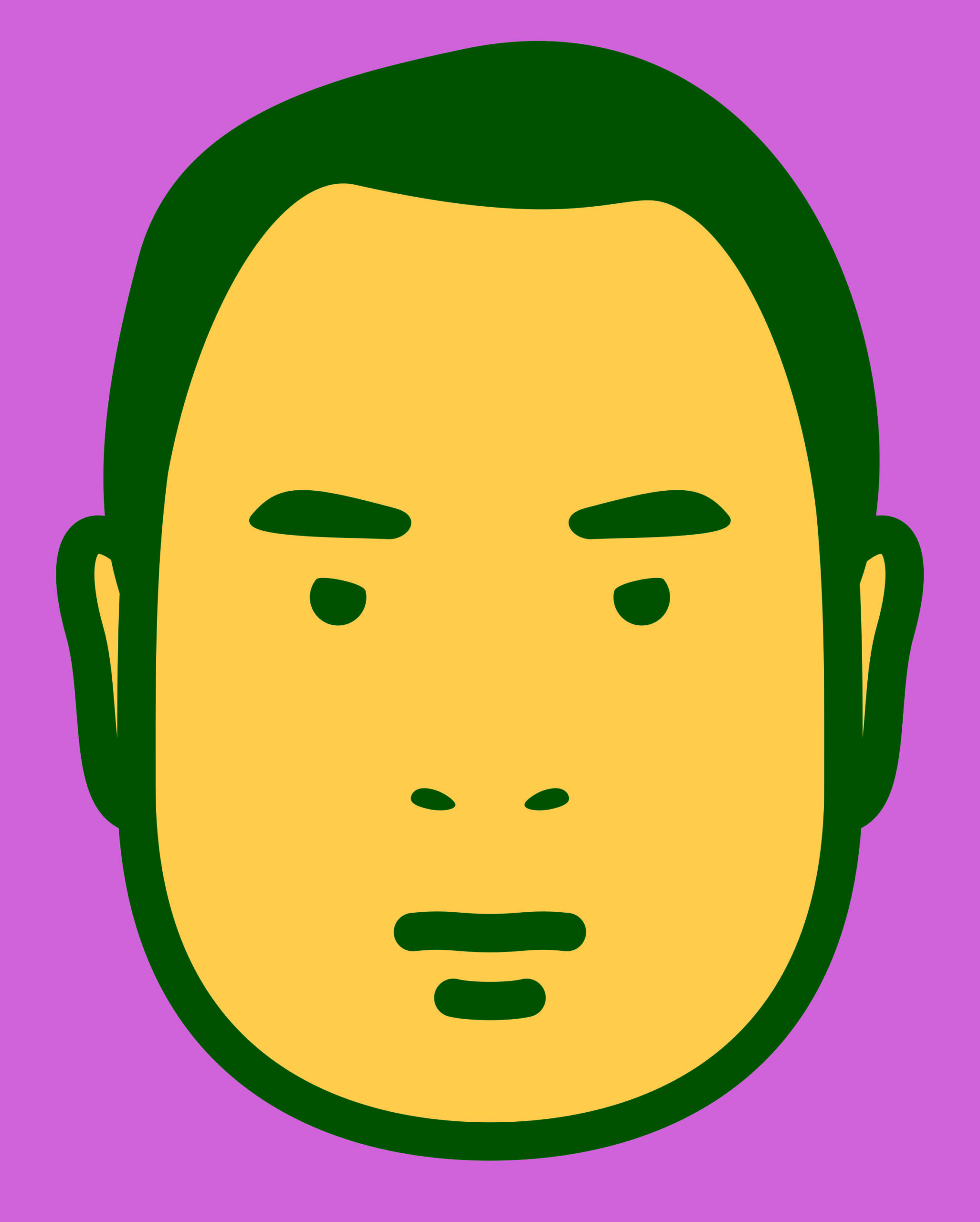 The other project, I started on a trip to India where I asked everyone I met to pose for a face only portrait. Back in London I used these straight-on photos to create the simplest portraits I could manage. They are (apart from hair) completely symmetrical and lack a body or a neck. Part of the reason for the simplicity is to help a future plan I have to create an AI programme that can do the portraits for me. For this set I drew them myself but aimed for a kind of emblematic, universal brand image for each individual. I then used Hindu inspired bright colours, often seen on images of gods, and used to paint the facades of village houses I saw in Southern India. I made a maximum contrast palette of four dark colours, four mid tone and four light colours. These are randomly allocated to each portrait with the dark colour used as the drawn line. As with maps these few colours are all that are needed to differentiate and maximise the areas of the image.