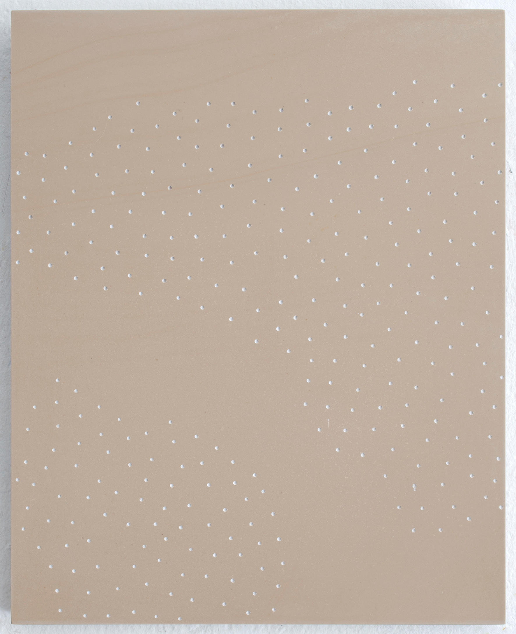 In Sofie Thorsen’s presentation, walls serve as fundamental surfaces on which marks are made or picture panels hang. One of the walls in the exhibition has been painted so that it provides, both in its texture and colour, a point of reference. Opposite that wall, collage reliefs hang, consolidating the various elements in the show, drawing viewers’ attention to the movements and reflections that are part and parcel of the entire installation as a whole.