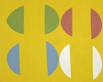 Form und Farbe schärfen sich bei Bauch aneinander, dass wird gerade dort klar, wo er Reihungen einer Form über mehrere Leinwände weiterverfolgt. Bauch zeigt neue Serien von Malereien, die in unterschiedlichen Formaten ihre jeweilige Formgebung wieder und wieder durchspielen, verkehren und neu ausrichten. In diesen Serien regiert, trotz aller Abstraktheit der Formen nicht deren graphische Erstarrung, sondern diejenigen unmerklichen Differenzen, die erst in solch einer kontinuierlichen Repetition sichtbar werden. Sie sind es die den Weg frei geben für momenthaft aufscheinende figurative Projektionen ihrer Betrachter/Innen, die erst im Blick entstehen, unangeleitet und erzeugt erst im individuellen Verhältnis zum Bild. Denn diese Projektionen liegen nicht zuletzt in den Vorgeschichten des Mediums, Erinnerungsbilder, die Bauch in seinen Malereien auftauchen lässt, ohne sie je direkt zu zitieren. Die Geschichte in Bauchs Malereien ist kein connaisseurhafter Referentialismus, eher schon ein Abdruck der Historie des Sehens. Hier sind es Anmutungen der 1950er ebenso wie der 80er, Formen des Abstrakten Expressionismus oder der frühen britischen Pop Art, die hier ohne gestische Monumentalität oder informelle Tragik zurückkehren.