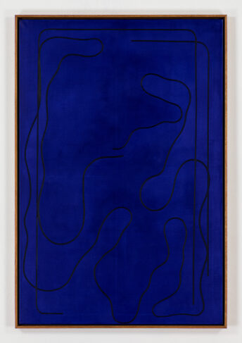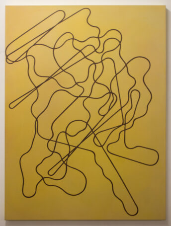Es liegt ein ganz offensichtlicher ernsthafter Witz in den Bildern Sebastian Kochs, der durch das Ausformulieren der Linie auf der Leinwand zum Ausdruck kommt. Eine gemalte Fläche wird durch eine Linie gestört, die Linie scheint nur soweit formuliert, bis es zu einem Dialog zwischen Fläche, Linie und Bildraum kommt. Koch betreibt dieses Spiel solange, bis diese Liniengefüge zu Assoziationen mit etwas außerhalb des Bildes liegenden anregen. Die Linien werden zu Zeichen, die wir nicht eindeutig zuordnen können. Aber eine leise Ahnung hat jeder Betrachter, sie reift nur nicht zu einer konkreten Form in unserer Vorstellung, obwohl die Linie eine ganz konkrete Form annimmt. Wenn diese Malerei dann noch mit einer Rahmenleiste versehen wird, die den Rand der Leinwand sichtbar macht, so lenkt er unseren Blick auf die Materialität der Malerei. Aber gleichzeitig verweist die Rahmung auch auf die Malerei der 50er Jahre und auf eine Zeit, als der abstrakte Expressionismus einen Wendepunkt der Malerei einleitete: Von der Projektionsfläche zum Materialkonstrukt. Koch fasst die Malerei als Konstruktion von Material auf, aber auch als Träger von Zeichen die auf ein „außen“ verweisen – mit dieser doppelten Konnotation eröffnet Koch ein Spiel der Zeichen, die in ihrer Lesbarkeit ganz im Sinne der Semiotik immer auch rätselhaft und uneindeutig bleiben und nicht einen gewissen Witz entbehren.
